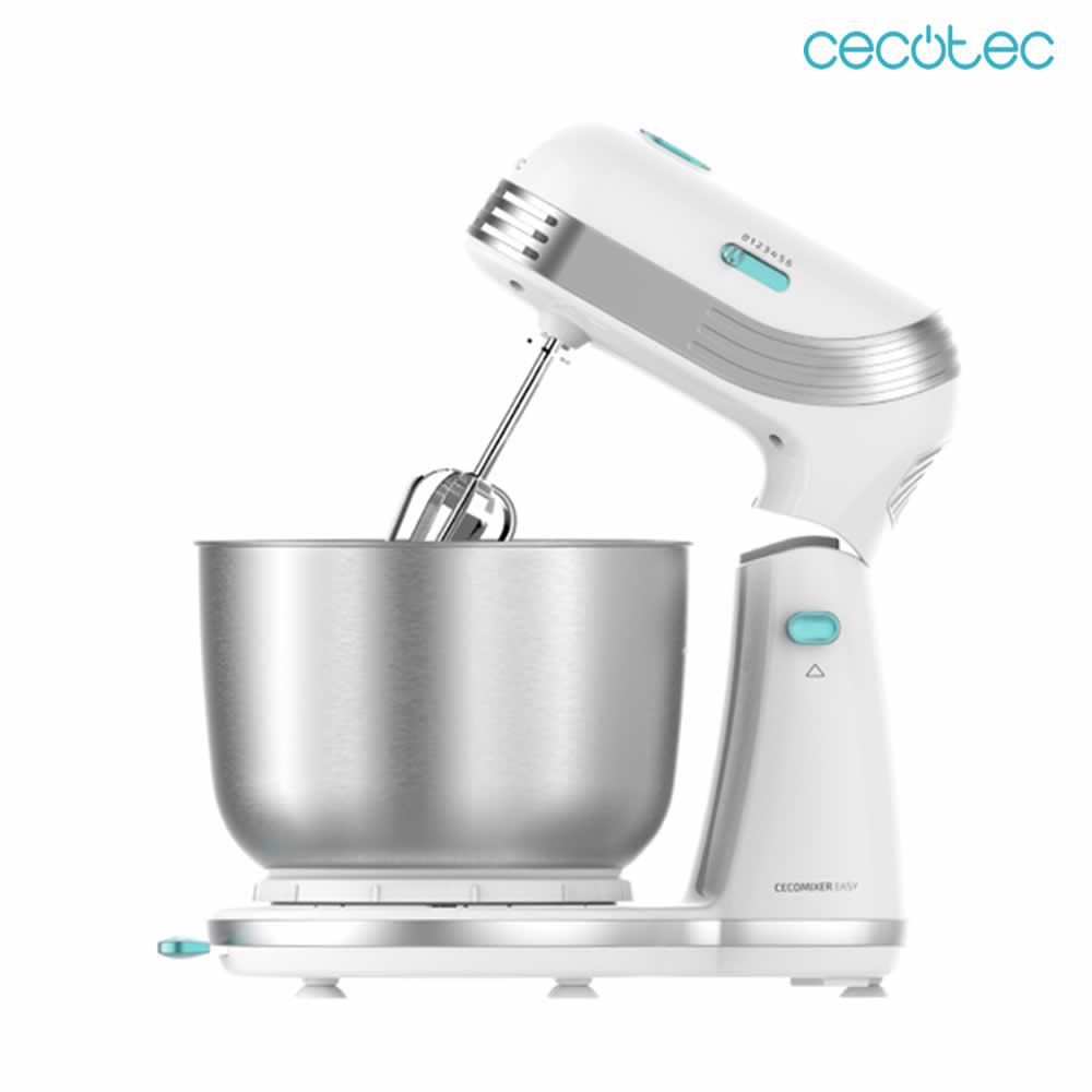 Batidora amasadora Cecomixer Easy White de Cecotec con 250 W de potencia con movimiento planetario, 6 niveles de velocidad y bol de acero inoxidable de 3 litros. Incluye un juego de varillas y uno de espirales.