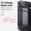 Es ideal para superficies de hasta 35m2, ecológica, pues no produce ni gases ni dióxido de carbono, y, además, el aire se esteriliza al pasar a través de la llama.