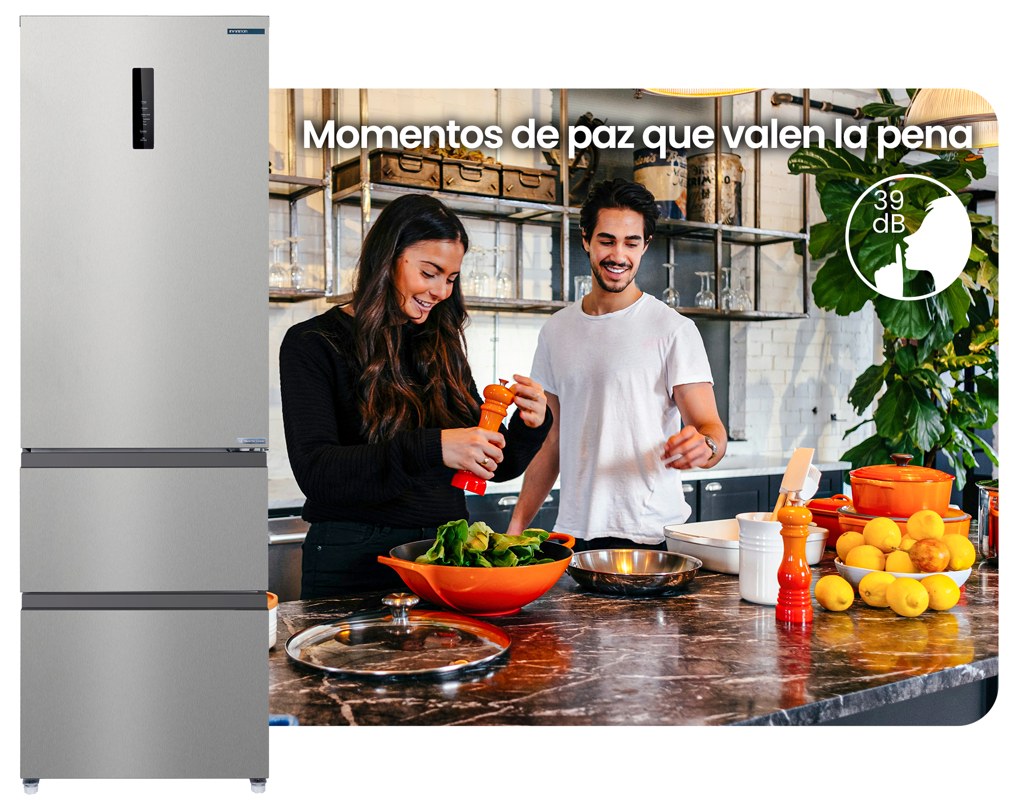 El compresor Silent Design es silencioso y preciso, junto al sistema Inverter cuidan y prolongan la vida de tu electrodoméstico. Hogares más silenciosos.