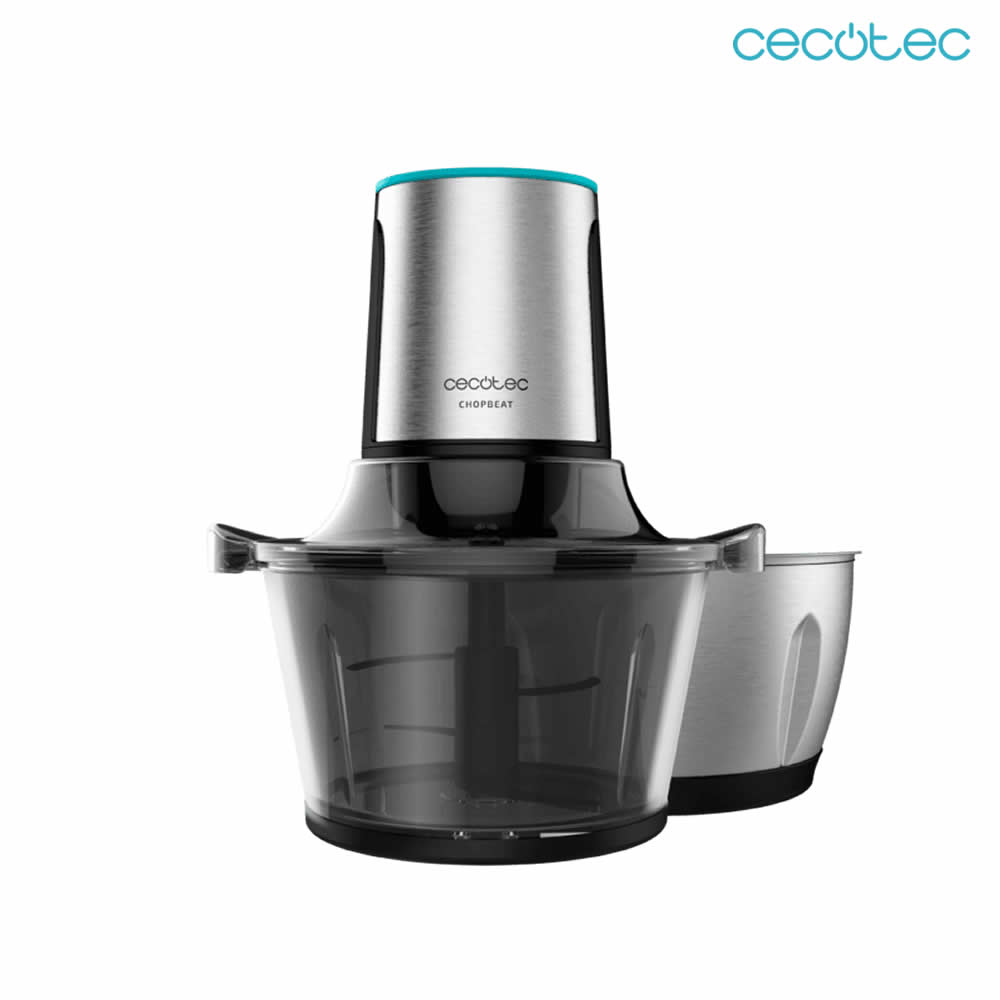 Cecotec Picadora de carne y verduras ChopBeat 1500 TitanBlack Steel de 600 W, con 4 cuchillas de titanio negro, bol de acero inoxidable de 1,5 L y dos velocidades.