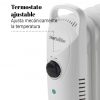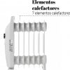 Sus 7 elementos calefactores (cada uno de 11×33 cm) y sus 3 canales de distribución de aceite, permiten realizar una óptima distribución del calor en superficies de hasta 12m². Además, su natural diseño en color blanco con detalles en negro, es ideal para colocarlo en cualquier lugar de casa sin ocupar demasiado espacio. Su indicador luminoso, te indicará cuando está encendido, para que no te olvides de apagarlo.