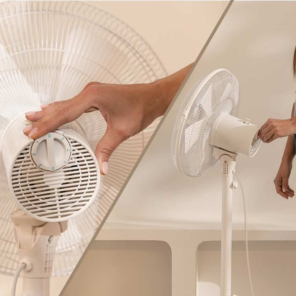 Ventilador de pie y de sobremesa con 40 W, 3 velocidades, oscilación y altura ajustable hasta 115 cm.