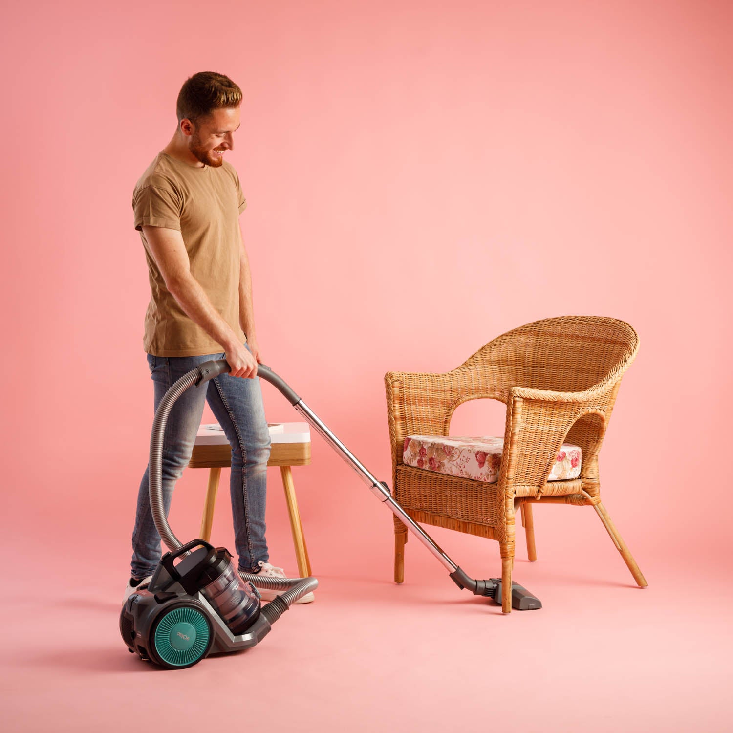 Con sistema de aspiración multiciclónico que no necesita bolsas ni consumibles. Depósito de 3 litros muy fácil de vaciar.