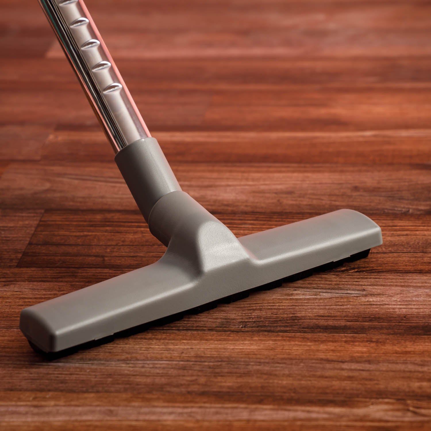 Con cepillo conmutable que permite aspirar en alfombras; suelos duros y parquet eficazmente. Cuenta con ruedas de goma para poder ser usado en cualquier suelo