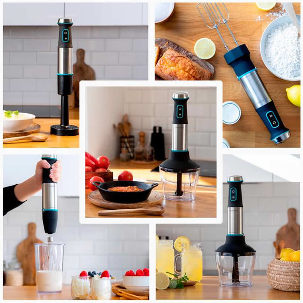 Con un selector de velocidad ajustable y la función Turbo se adapta con máxima precisión a las necesidades de cualquier receta. Las velocidades bajas son perfectas para los alimentos más blandos o para batir huevos, y las más altas o la función Turbo para batir alimentos de mayor dureza como la zanahoria o el coco. Además, cuenta con luces LED de funcionamiento con un diseño intuitivo y llamativo.
