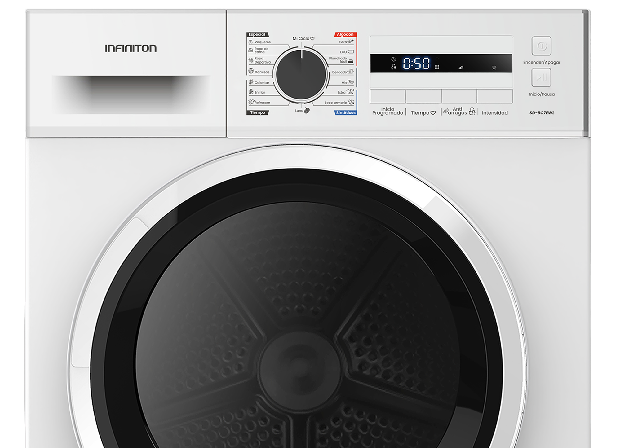 Secadora Infinito de 7 kg en color blanco, ideal para secar tu ropa de manera eficiente.