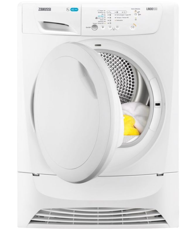 Secadora de condensación Zanussi de 7 kg, ideal para un secado eficiente y cuidado de tus prendas.