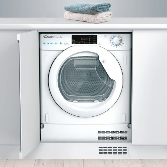 La secadora encastre Candy de 7 kg ofrece un rendimiento eficiente con su tecnología de bomba de calor, ideal para hogares modernos.